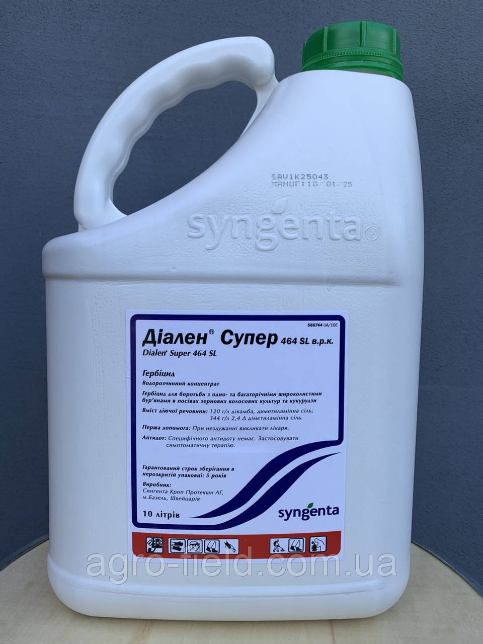 Діален Супер має оптимальну комбінацію активних компонентів (дикамб у кількості 120 г і диметиламінну сіль 344 г). Перші симптоми ураження на бур'янах видно через 7-15 днів після обприскування.